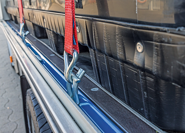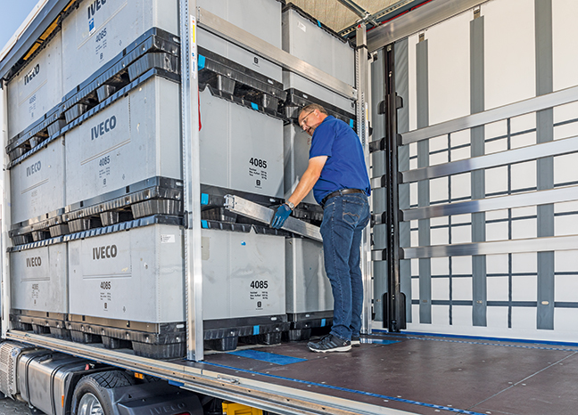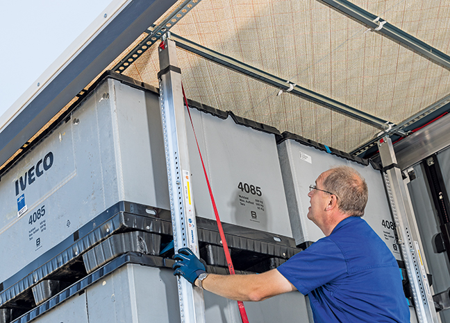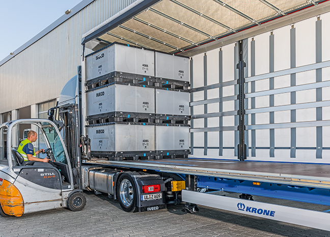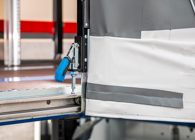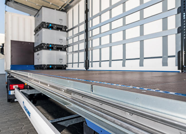 Open or closed in just 30 seconds: the quick-release tarpaulin with micro stanchions on the Profi Liner Comfort. Ergonomic and quick opening is also the order of the day with the central hydraulic lifting roof. This makes the Profi Liner Comfort a joker not only for automotive loaders but also for beverage transport, with the relevant load securing certificates as standard.